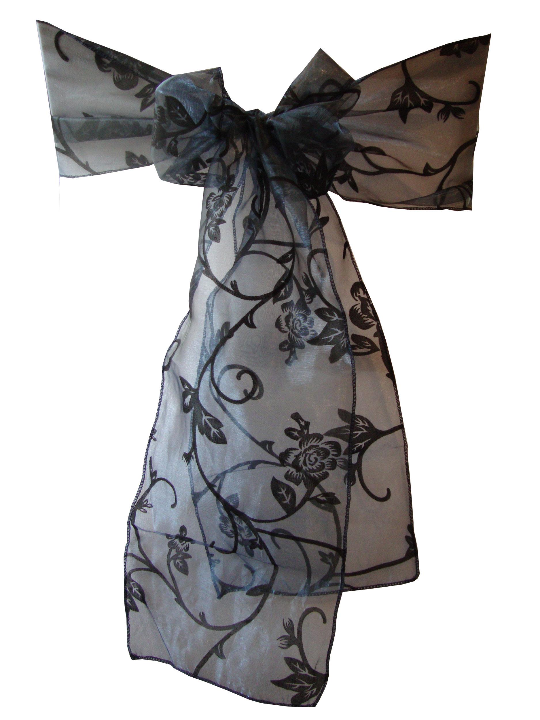 Auf der Suche nach marineblauen beflockten Schärpen für Ihre Hochzeit oder Ihren Jahrestag? Suchen Sie nicht weiter als in unserem hochwertigen Sortiment an beflockten Organza-Schärpen!