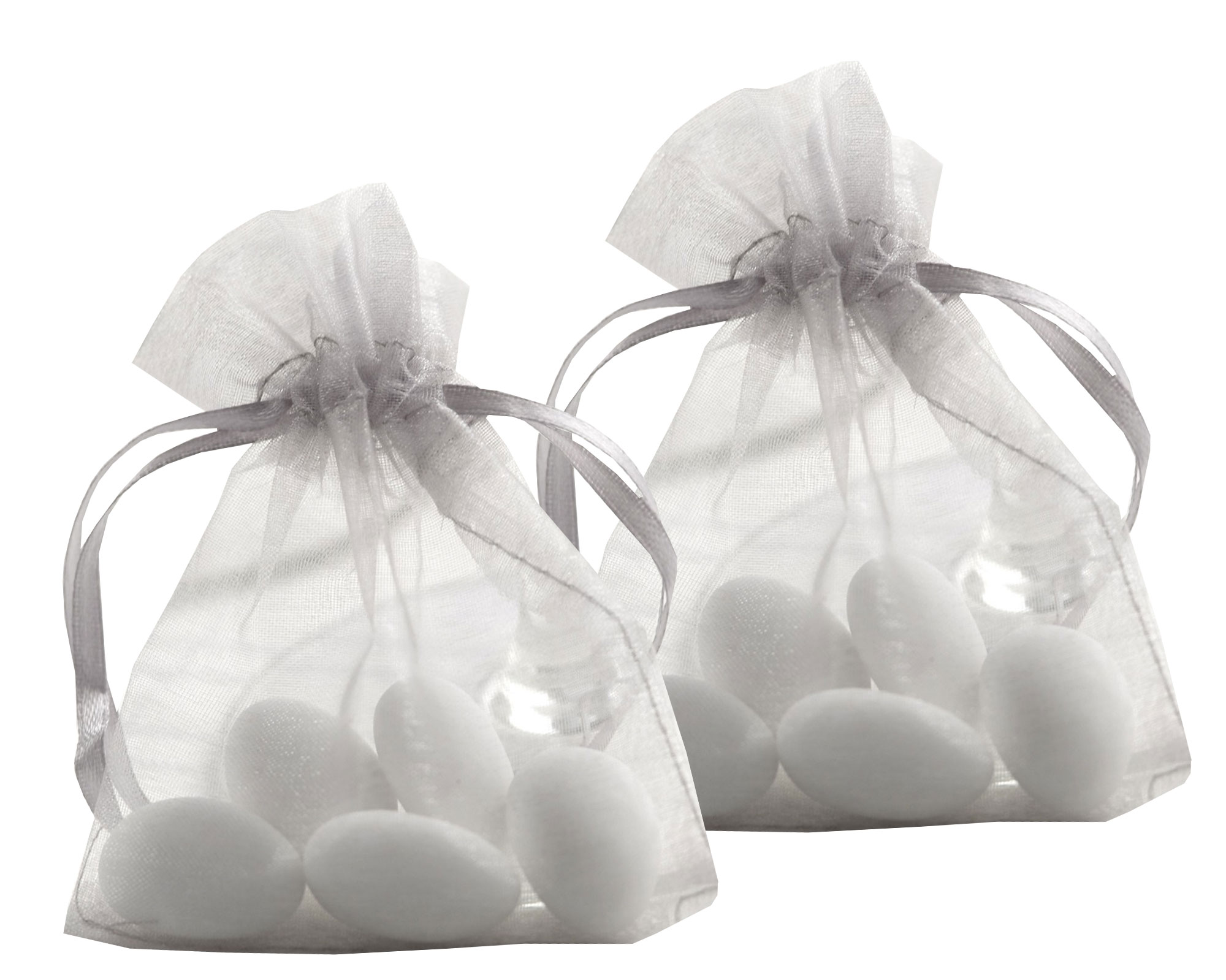 Practical set of Small Silver Organza Bags with a size of 7cm x 9cm. The whole package consists of 50 silver gift bags, thus ensuring much space for bigger items.