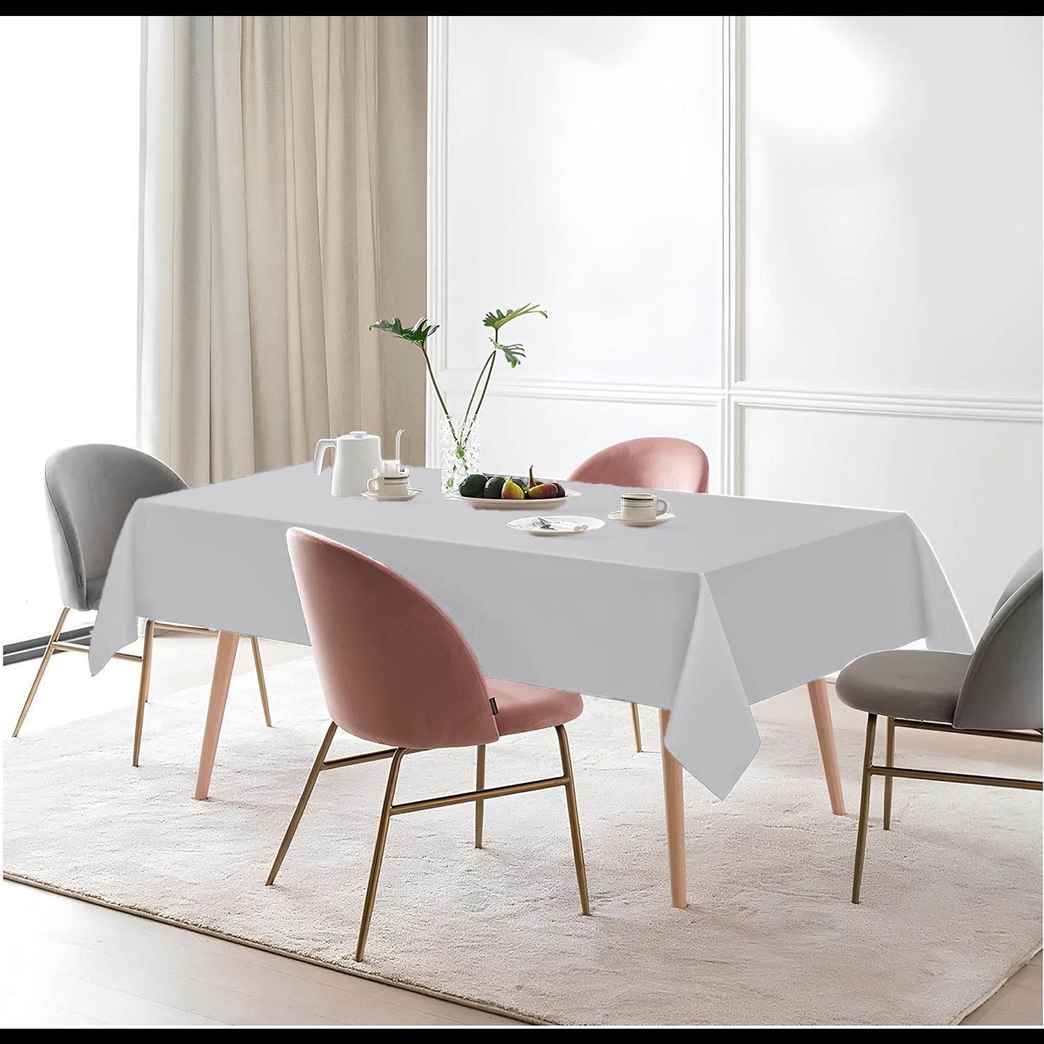 This Tablecloth can be used during official parties (like banquets) but also during casual celebrations (for example, while youre spending your time with friends and family during a barbecue or picnic). Rectangular Polyester Tablecloth will match perfectly all types and colours of table decorations. You can bring elegance to your dinner table (by combining this cloth with some classic black or baby pink decorations) or create something vibrant, for example, by adding some hessian decor.