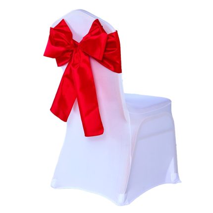 Die glänzende Textur des Stoffes ist die beliebteste Stuhldekoration aller Zeiten! Charmant um Ihre farbenfrohen oder schlichten Stuhlhussen gewickelt, unterstreichen diese funkelnden Lieblinge die Urbanität Ihres Event-Ambientes.