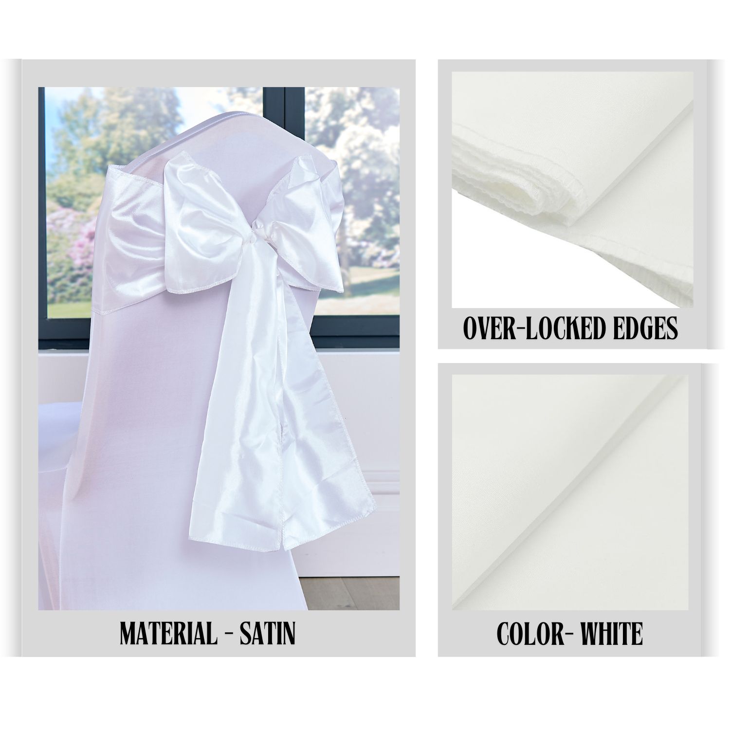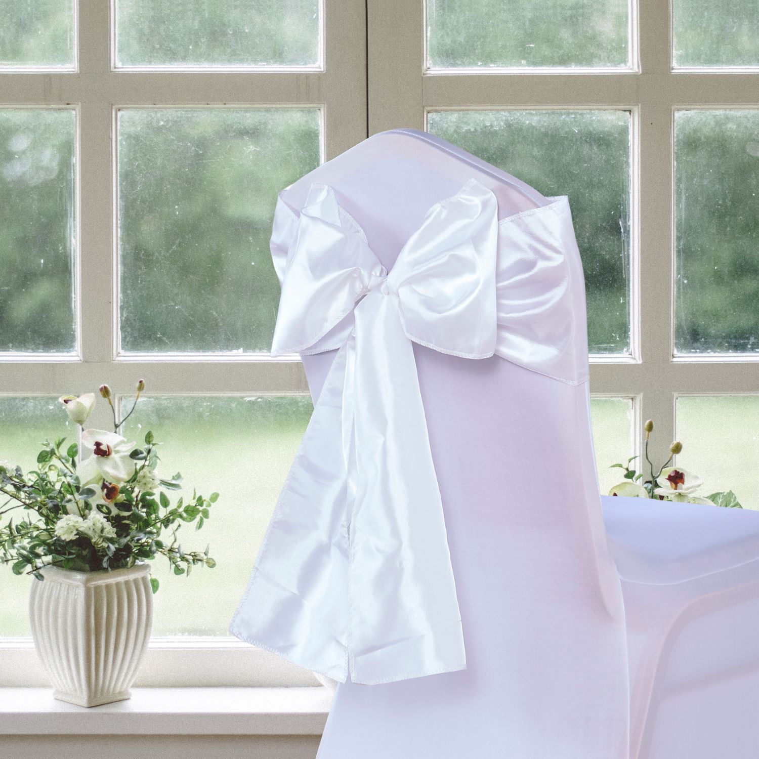 Stuhlschärpen aus weißem Taft (10 Stück)
